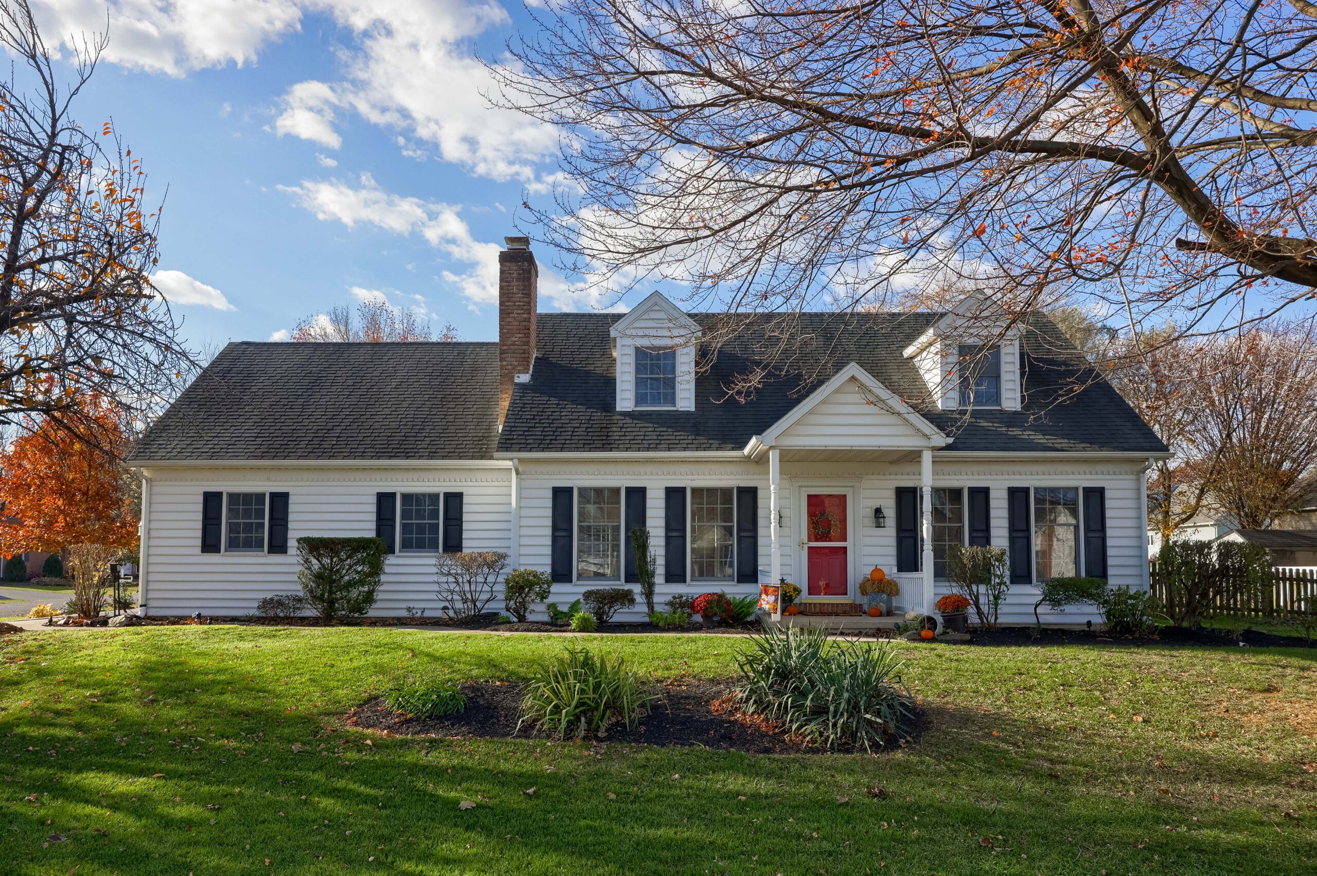 Welcome to this warm and inviting Cape Cod home, perfectly situated on a large corner lot with a fenced-in backyard and lovely patio, ideal for outdoor gatherings, pets, and gardening. Step inside to a welcoming living room with a brick hearth and cozy fireplace, creating the perfect spot to unwind. A formal dining room provides space for family dinners and entertaining, while the updated kitchen combines modern convenience with timeless charm. The bright and beautiful four-season room fills the home with natural light and adds extra space for relaxing or enjoying your favorite hobbies. The first floor includes a versatile bedroom or office and a convenient half bath. Upstairs, the spacious primary suite features a private ensuite bathroom and a comfortable sitting area, a lovely retreat at the end of the day. Two additional bedrooms and a full bathroom complete the upper level. The home features hardwood floors on the first floor, brand-new carpet on the stairs and second floor, and has been freshly painted throughout. An energy efficient Bosch heat pump was installed 8/24. The large basement offers laundry, plenty of storage, and potential for future finishing. An attached two-car garage adds to the convenience of this well-maintained home. There is also an insulated shed with electricity. The numerous upgrades offer a move-in ready feel from top to bottom. Fresh, bright, and full of charm—this lovely Cape Cod is ready to welcome you home!